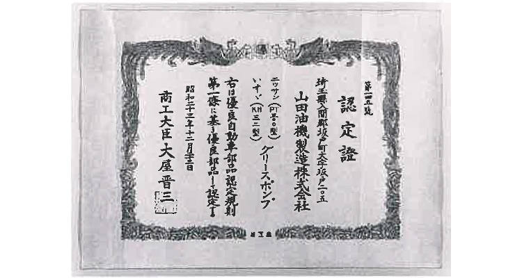 通商産業省よりグリースポンプ(JIS D8002)に対し日本工業規格表示許可工場の指定を受ける