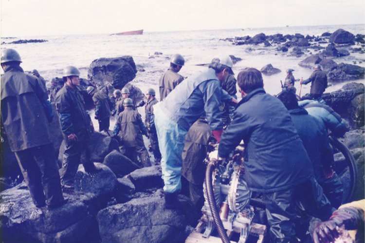 福井県三国町で発生したロシア船ナホトカ号重油流出事故に際しダイアフラムポンプ(NDP-80BAV)が重油除去作業に大活躍する